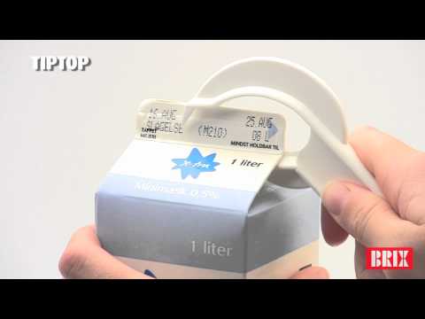 Speciaal hulpmiddel om melkverpakkingen open te maken. Haal de TipTop eerst omhoog om de verpakking open te maken. Gebruik daarna het haakje om de "flappen" open te trekken.
