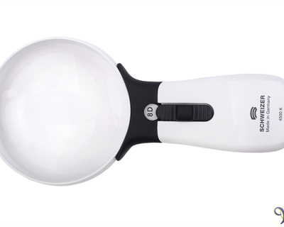 Schweizer ERGO-Lux MP Mobile LED 164092 8D draagbare lifestyle handlichtloep met SMD LED-verlichting van 4500 K en twee lichtintensiteiten, asferische lens van 85 mm, vergroot 2 maal, kleur wit/donkergrijs, incl. bescherm-/schoonmaakhoesje, excl. 3 AAA batterijen.