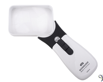 Schweizer ERGO-Lux MP Mobile LED 164102 10D draagbare lifestyle handlichtloep met SMD LED-verlichting van 4500 K en twee lichtintensiteiten, asferische, gekantelde lens van 75 x 50 mm, vergroot 2.5 maal, kleur wit/donkergrijs, incl. bescherm-/schoonmaakhoesje, excl. 3 AAA batterijen.