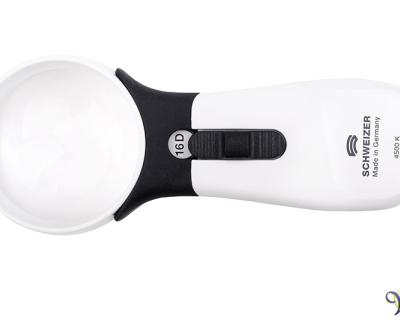 Schweizer ERGO-Lux MP Mobile LED 164162 16D draagbare lifestyle handlichtloep met SMD LED-verlichting van 4500 K en twee lichtintensiteiten, asferische lens van 60 mm, vergroot 4 maal, kleur wit/donkergrijs, incl. bescherm-/schoonmaakhoesje, excl. 3 AAA batterijen.