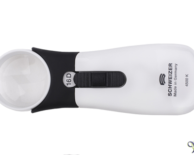 Schweizer ERGO-Lux MP Mobile LED 164172 16D draagbare lifestyle handlichtloep met SMD LED-verlichting van 4500 K en twee lichtintensiteiten, asferische lens van 35 mm, vergroot 4 maal, kleur wit/donkergrijs, incl. bescherm-/schoonmaakhoesje, excl. 3 AAA batterijen.
