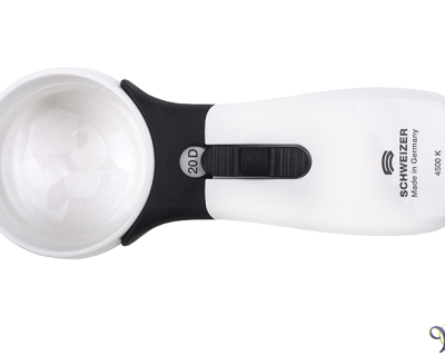 Schweizer ERGO-Lux MP Mobile LED 164202 20D draagbare lifestyle handlichtloep met SMD LED-verlichting van 4500 K en twee lichtintensiteiten, asferische lens van 55 mm, vergroot 5 maal, kleur wit/donkergrijs, incl. bescherm-/schoonmaakhoesje, excl. 3 AAA batterijen.