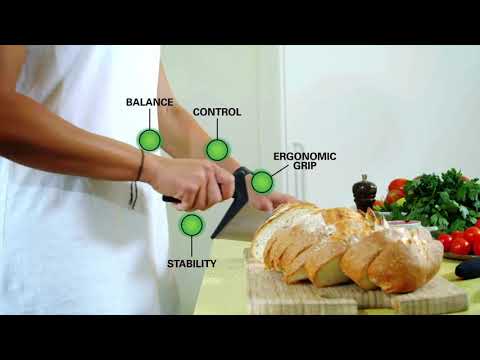 Keukenmessen van uitstekende kwaliteit met een uniek ergonomisch gevormd handvat. Dit zorgt voor een optimale controle, balans en stabiliteit bij al uw snijwerkzaamheden. Minder kracht nodig dus u kunt langer werken. Soft-touch anti-slip grip en RVS blad. Ideaal voor personen met verminderde kracht in arm en schouder.