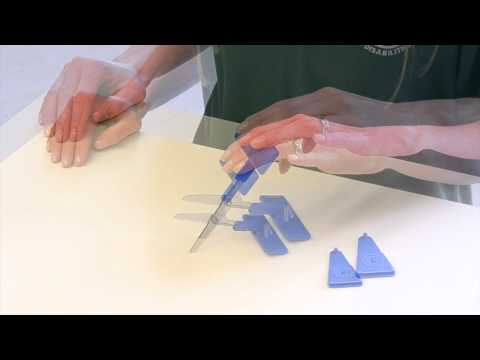 Deze tafelschaar beschikt over T-vormige uiteindenen vereist geen grijpfunctie. Tijdens het gebruik glijdt de schaar over de tafel. Lengte blad 45 mm. De schaar heeft afgeronde bladen.